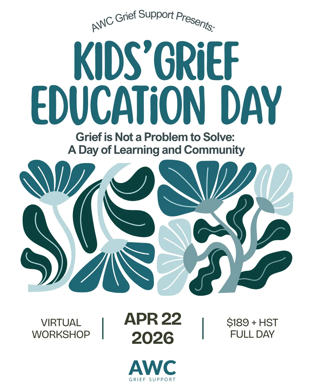 If you would like to register a group of five or more people, we can offer discounts of 15-25% per person. We also offer ten "pay what you can" registrations. For either of these options please contact Swetha at education@awcgrief.com.